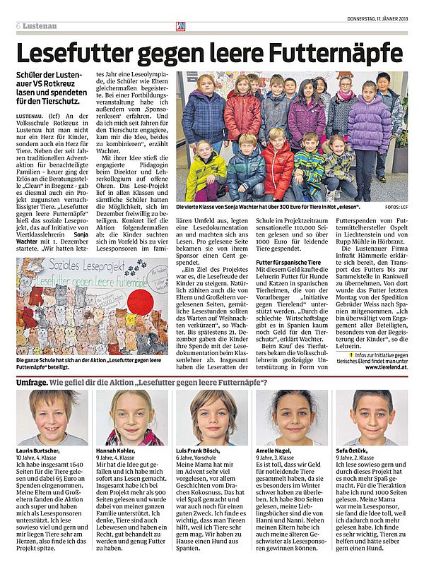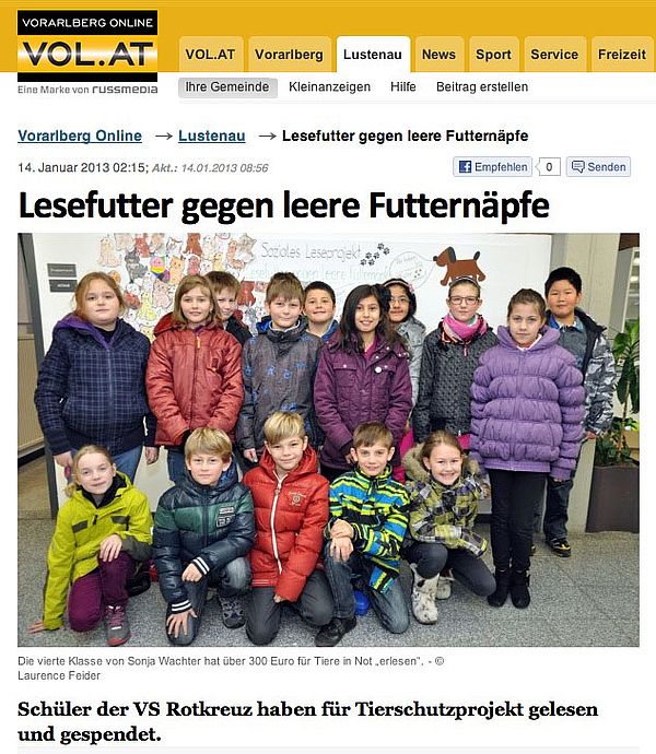 Leseprojekte gibt es in allen Variationen. Aber zu lesen, um gleichzeitig für Tiere Geld zu sammeln, diese Kombination war der VS Rotkreuz vorbehalten.